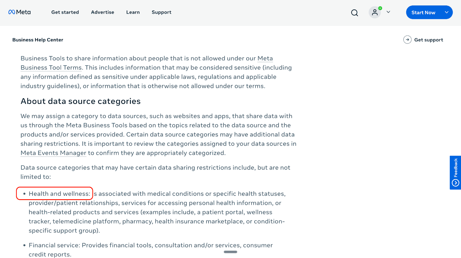 Meta classifies health and wellness brands under a tiered sensitivity framework. Tier 2 covers categories like mental health, therapy, and wellness services. Under this classification, Meta restricts which events advertisers can use for conversion optimization.